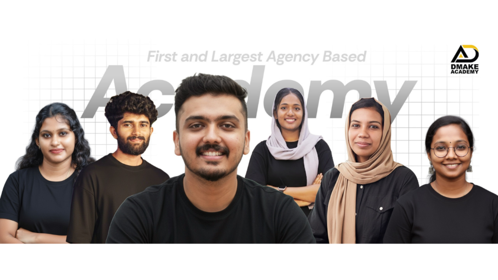 Dmake Academy is the best digital marketing institute in Kerala, offering the most practical and job-focused digital marketing course in Kollam. As the first and largest Kerala digital academy, we provide agency-based digital marketing training powered by our in-house agency, Dmake Technologies. Whether you are searching for digital marketing classes near me, an advanced AI digital marketing course in Kollam, or beginner-friendly multimedia training, Dmake Academy offers programs designed for real careers and real skills.